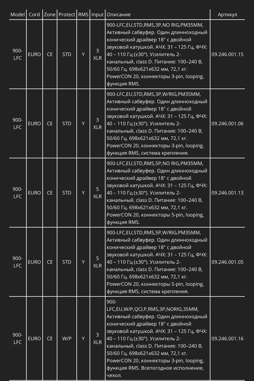 Благодаря высокой линейности и повторяемости характеристик от экземпляра к экземпляру, 900‑LFC является мощным инструментом для создания прямых или кардиоидных низкочастотных массивов.