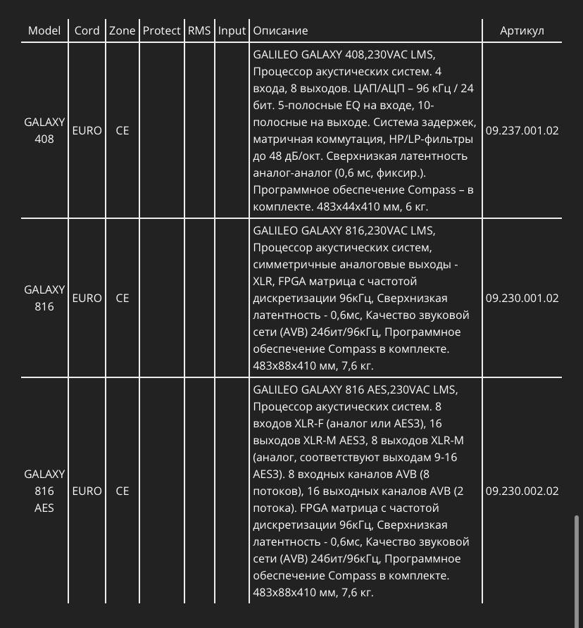 Построенный на скрупулезно разработанных алгоритмах Galileo, Galileo GALAXY сохранил самые востребованные пользователями алгоритмы обработки, включая 5-полосный U-образный и параметрические эквалайзеры, а также получил совершенно новые функции: матрицу задержек и улучшенную интеграцию задержек. Доступно три версии для различных конфигураций.
