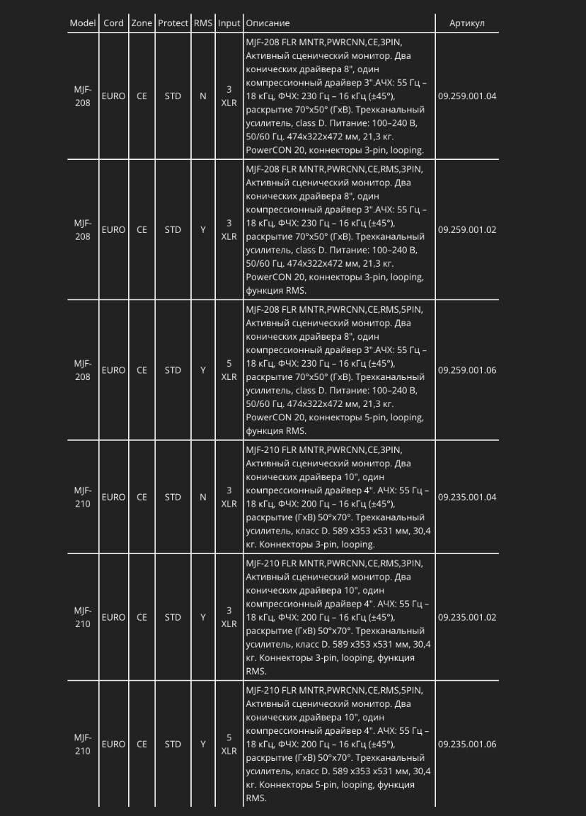 MJF-212АкустическиеРабочий диапазон частот155–18000 Гц