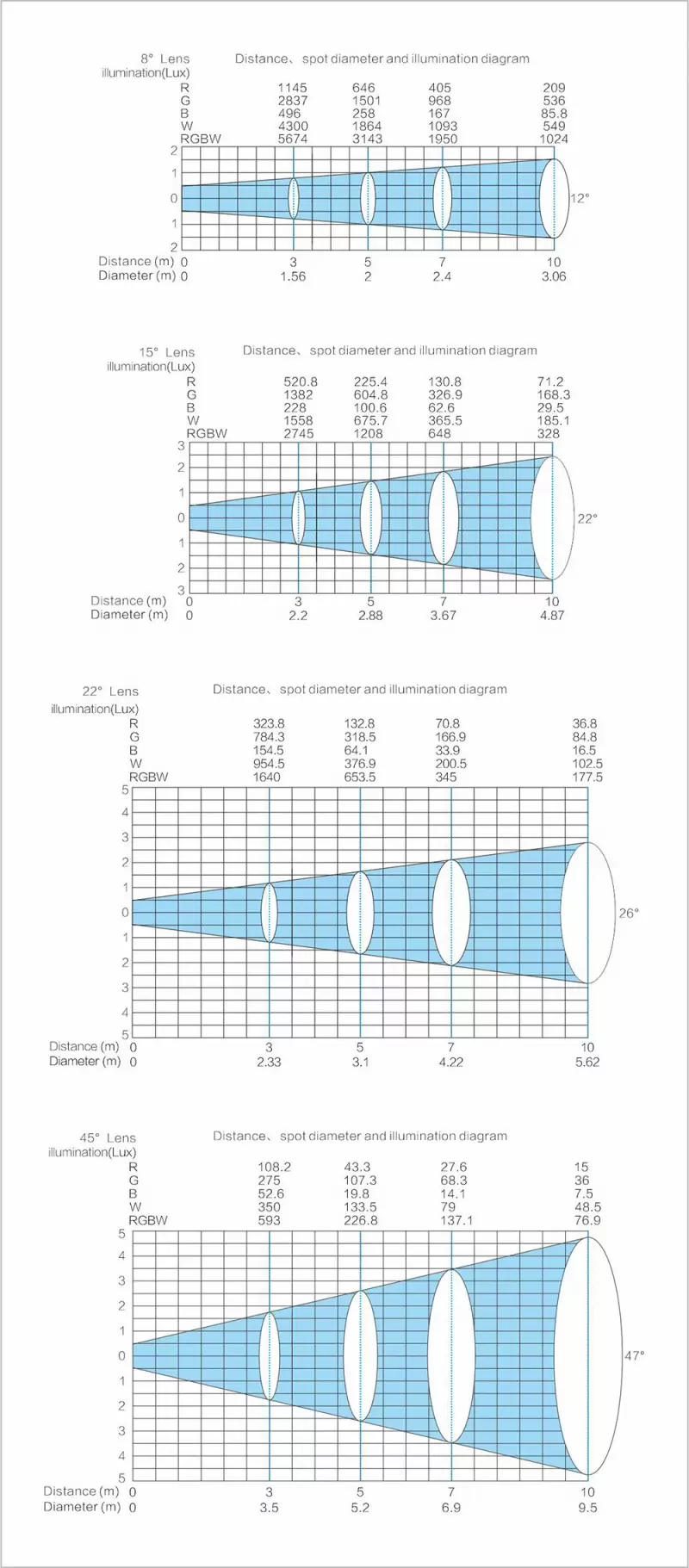 Степень линзы: 22° (стандартная); (опционально)8°; 15°; 45°.