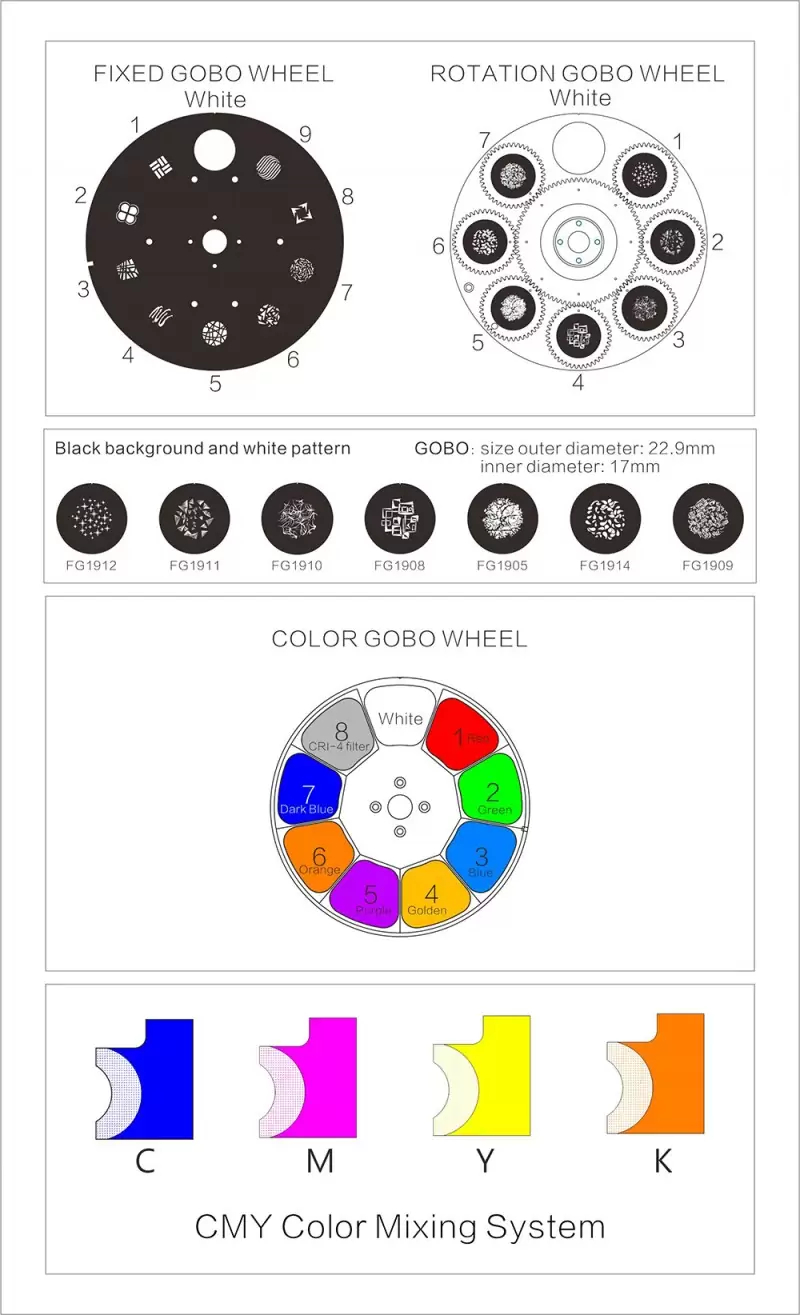 Вращающееся колесо гобо: 7+1 белое,Двунаправленный эффект анимации потока воды