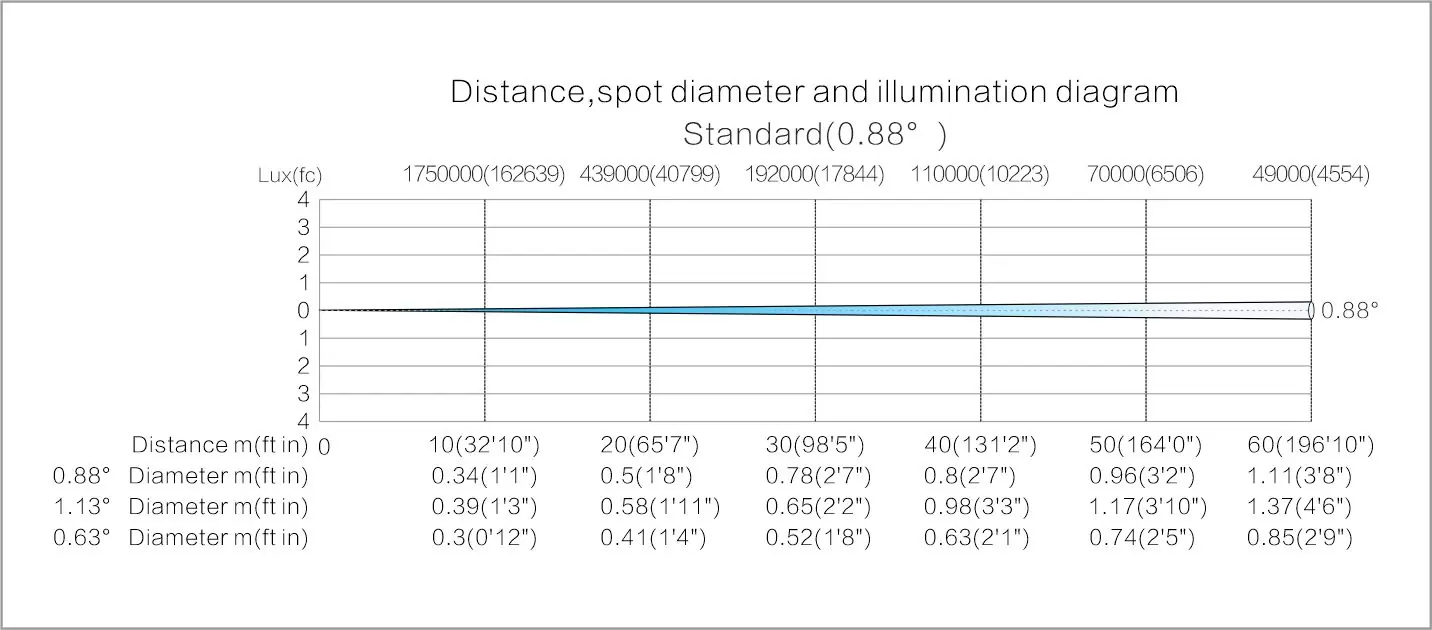 Световой поток: 1750000 люкс на 10 м 7680 люкс на 150 м