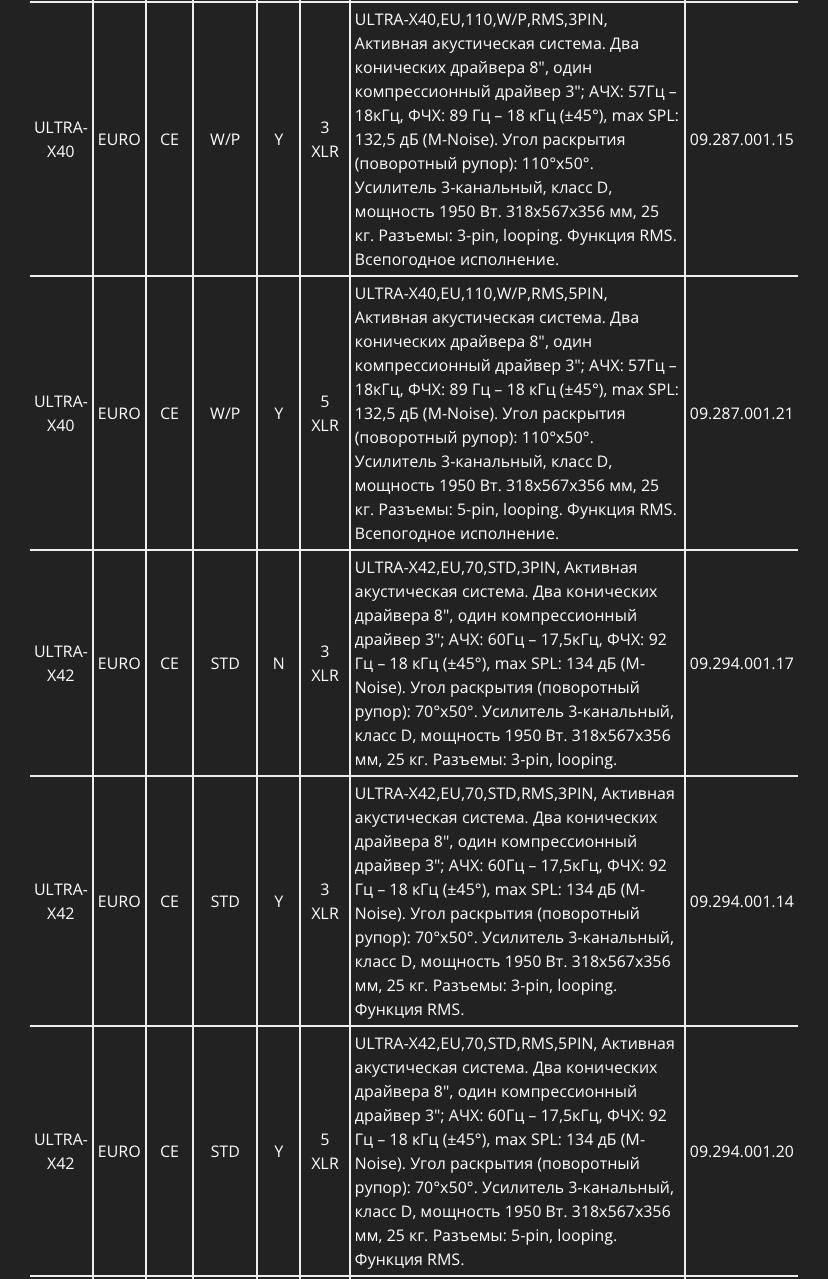 Два вида рупоров предоставляют всеобъемлющую гибкость в дизайне системы. Точно настроенный поворотный рупор постоянной добротности громкоговорителя ULTRA-X40 обеспечивает равномерное покрытие 110° x 50°. Нужен более сфокусированный звук? Тогда ваш выбор — ULTRA-X42 с более узким звуковым охватом, 70° x 50°.