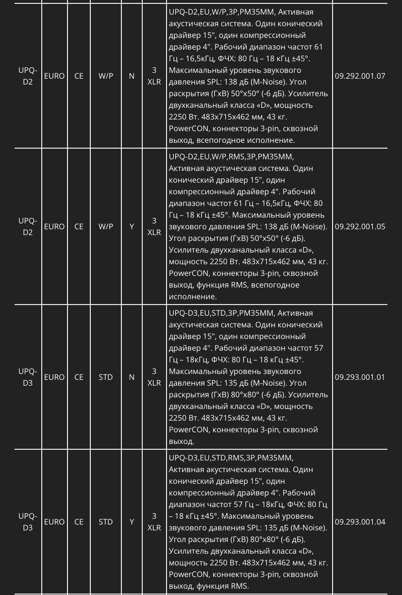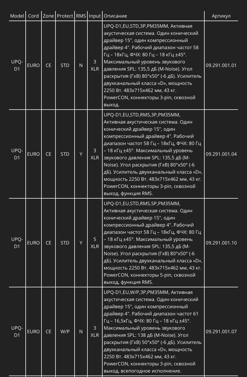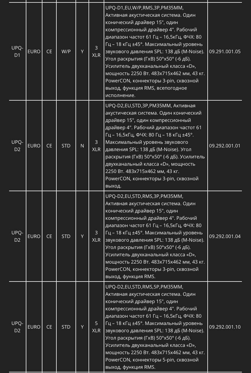 Громкоговорители UPQ обеспечивают высокую выходную мощность и низкий уровень искажений благодаря сложному DSP, который включает в себя лимитеры, корректирующие фильтры, алгоритмы коррекции фазы и схему защиты драйверов.