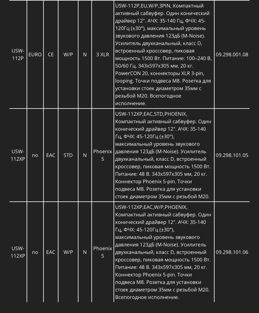 Активный сабвуфер USW-112P — это мощное звучание низких частот и компактный, универсальный корпус. Он разработан как идеальный компаньон для ULTRA X20, но прекрасно дополняет целый ряд громкоговорителей Meyer Sound, включая UPM, UP 4slim, Ashby 5C, и Ashby 8C. Его низкопрофильный корпус имеет всего 58,5 см в высоту, 33 см в ширину и 30,5 дюймов в глубину, что делает его идеальным выбором для установки в местах с ограниченным пространством.